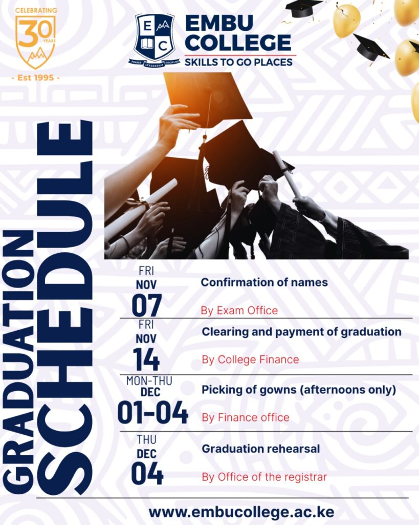 Join us as we celebrate the remarkable achievements of our graduating class at Embu College’s 8th Graduation Ceremony. This special occasion marks years of hard work, dedication, and excellence. Family, friends, and the entire college community come together to honor our graduates as they step confidently into the next chapter of their journey.
